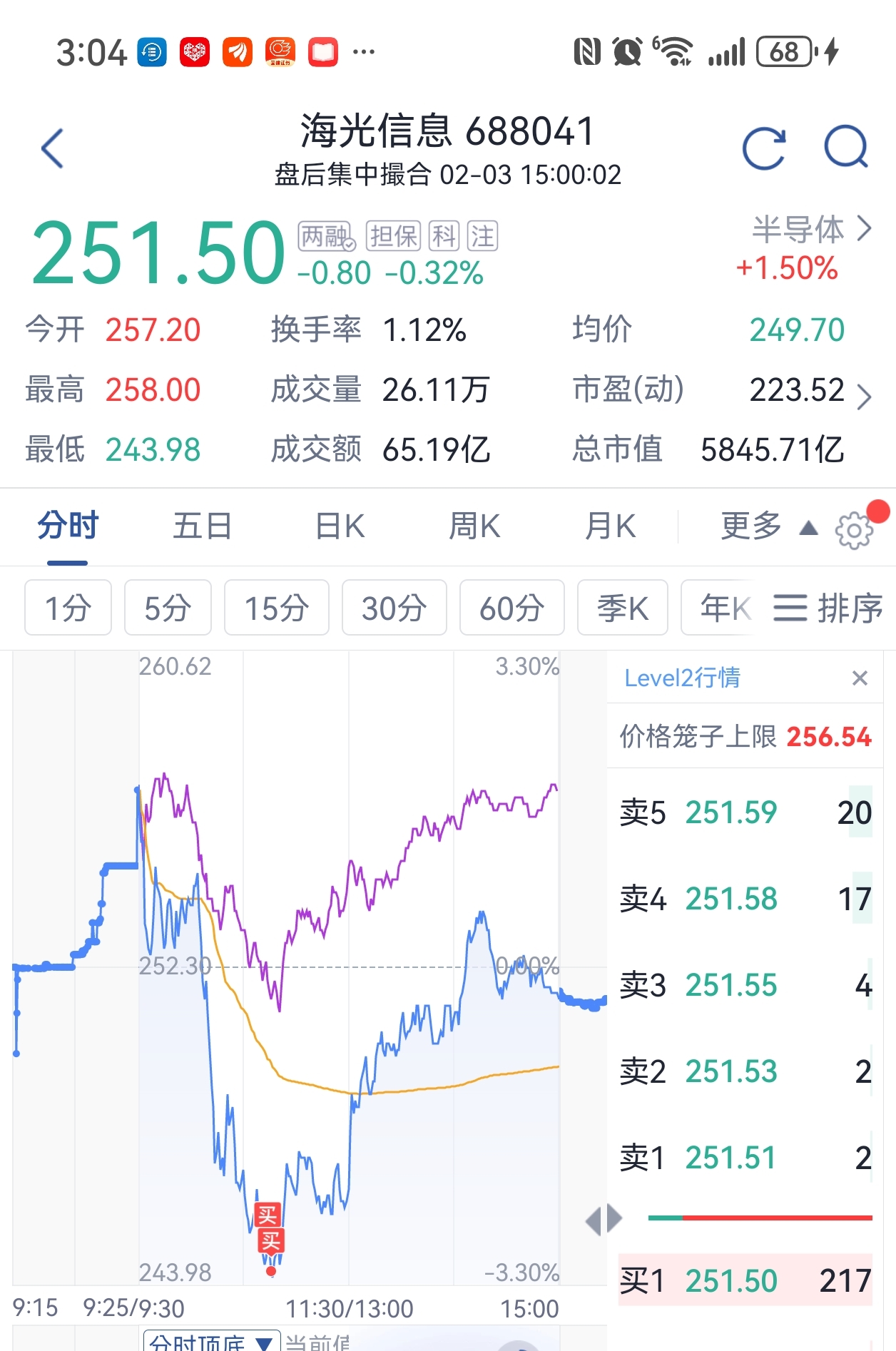 $海光信息(SH688041)$ 今早底部加大仓,不T就看到288位置