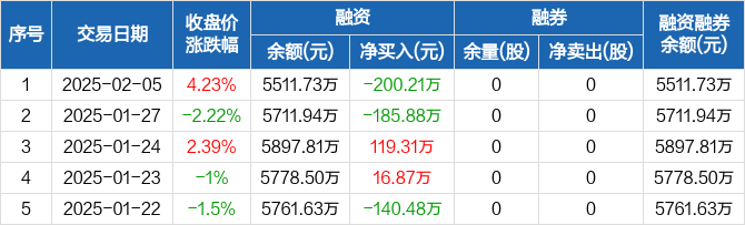 必易微:融资净偿还200.21万元,融资余额5511.73万元(02-05)