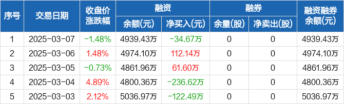 必易微:融资净偿还34.67万元,融资余额4939.43万元(03-07)