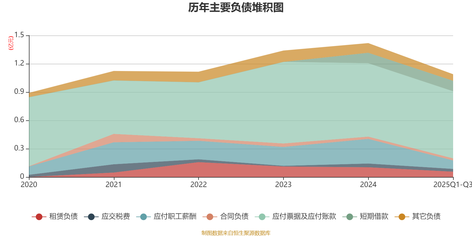 负债重大变化方面,截至2025年三季度末,公司应付职工薪酬较上年末减少65.53%,占公司总资产比重下降1.17个百分点;应付票据及应付账款较上年末减少8.57%,占公司总资产比重下降0.42个百分点;租赁负债较上年末减少45.8%,占公司总资产比重下降0.32个百分点;应交税费较上年末减少26.35%,占公司总资产比重下降0.07个百分点。