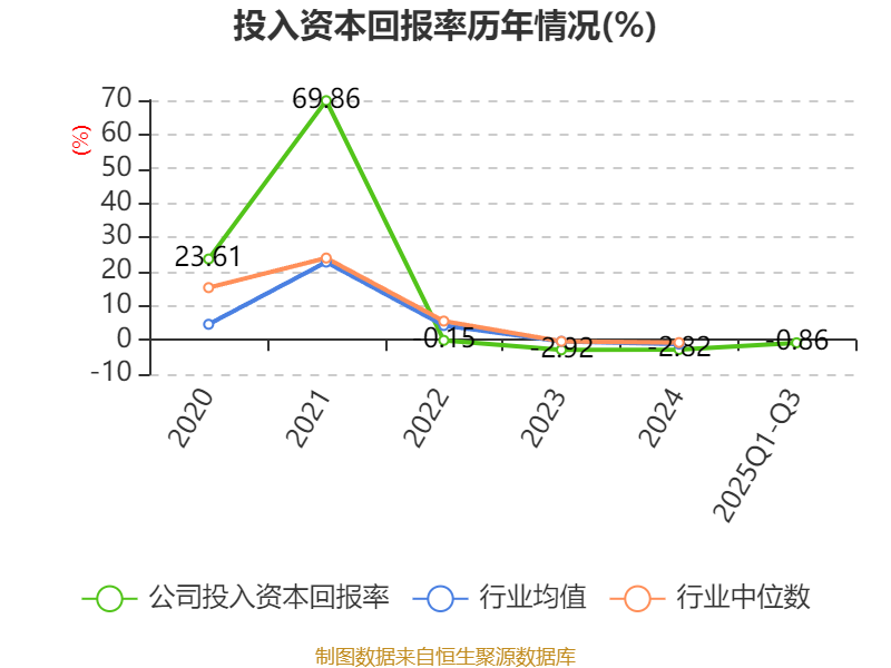 盈利能力方面, 2025年前三季度公司加权平均净资产收益率为-0.2%,同比上升1.32个百分点。公司2025年前三季度投入资本回报率为-0.86%,较上年同期上升1.89个百分点。