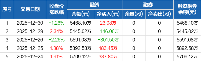 必易微:融资净买入23.08万元,融资余额5468.1万元(12-30)