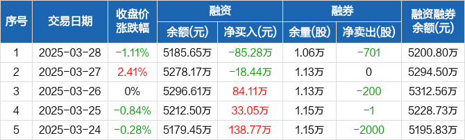 药康生物:融资净偿还85.28万元,融资余额5185.65万元(03-28)
