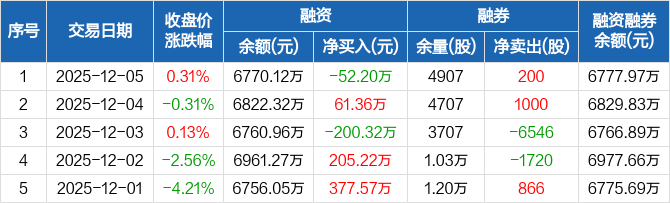 药康生物:融资净偿还52.2万元,融资余额6770.12万元(12-05)