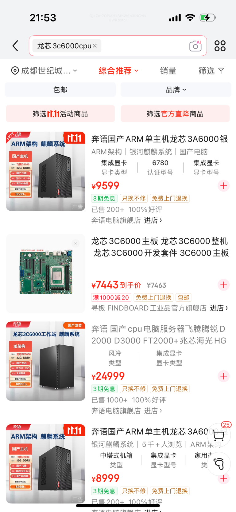 $龙芯中科(SH688047)$ 安静等待第三季度报告,京东上已经给出答案