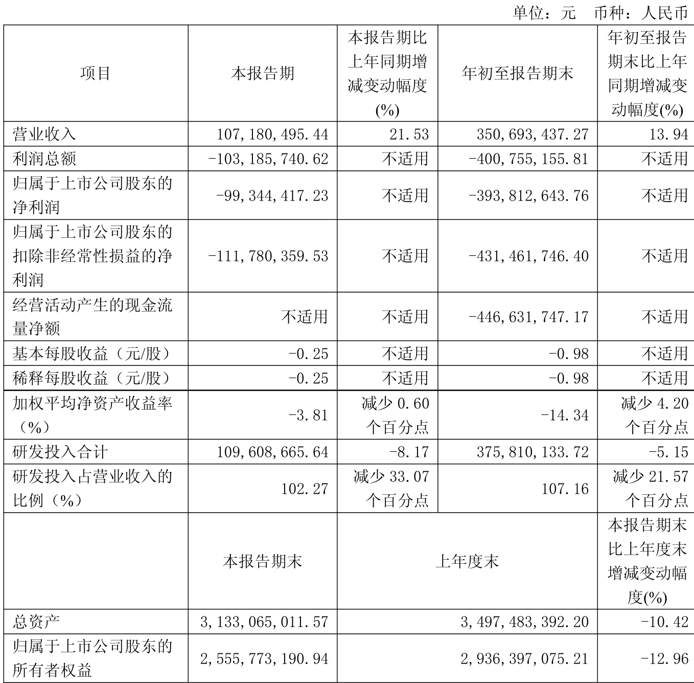 中证智能财讯龙芯中科(688047)10月29日披露2025年第三季度报告。前三季度公司实现营业总收入3.51亿元,同比增长13.94%;归母净利润亏损3.94亿元,上年同期亏损3.43亿元;扣非净利润亏损4.31亿元,上年同期亏损3.71亿元;经营活动产生的现金流量净额为-4.47亿元,上年同期为-2.66亿元;报告期内,龙芯中科基本每股收益为-0.98元,加权平均净资产收益率为-14.34%。