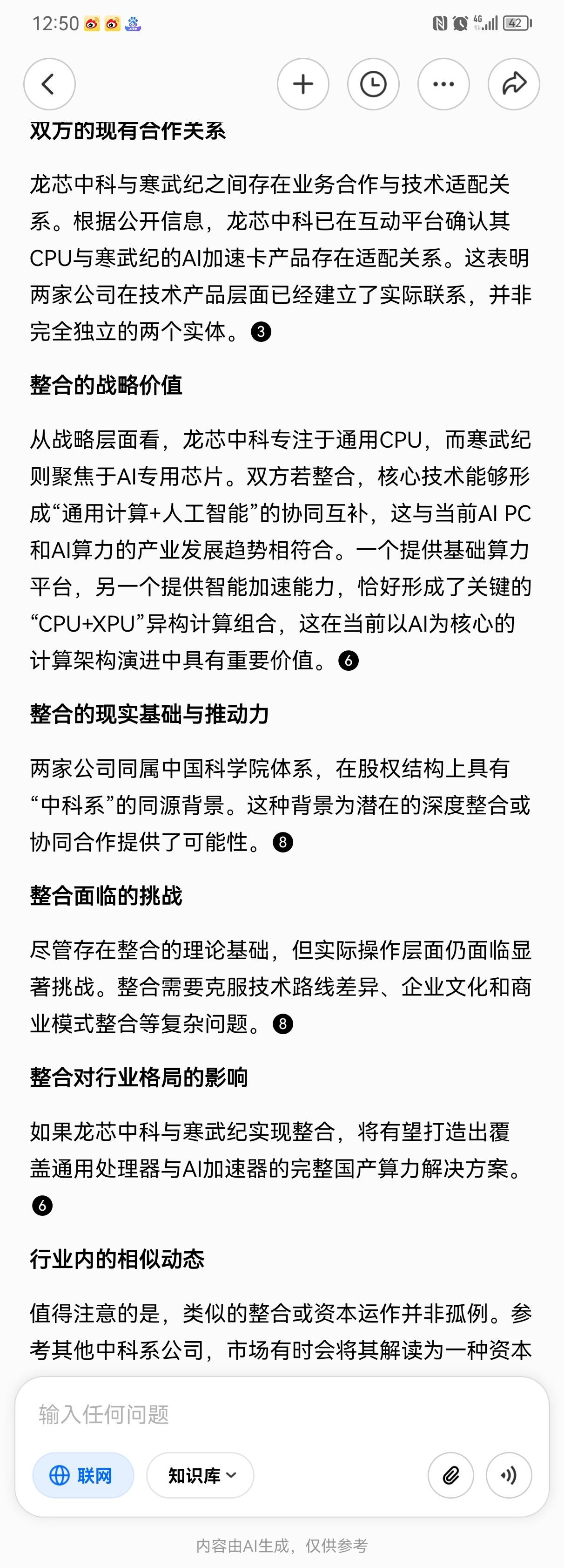 $龙芯中科(SH688047)$ $寒武纪-U(SH688256)$ 战略合作,中科系,算力基础,整合。