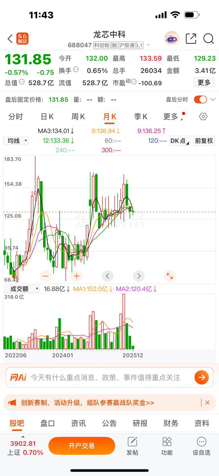 $龙芯中科(SH688047)$ 炒龙芯怎么会亏钱?好好看看现在股价依然在高位。