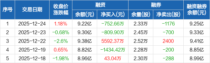 龙芯中科:融资净偿还752.66万元,融资余额9.22亿元(12-24)