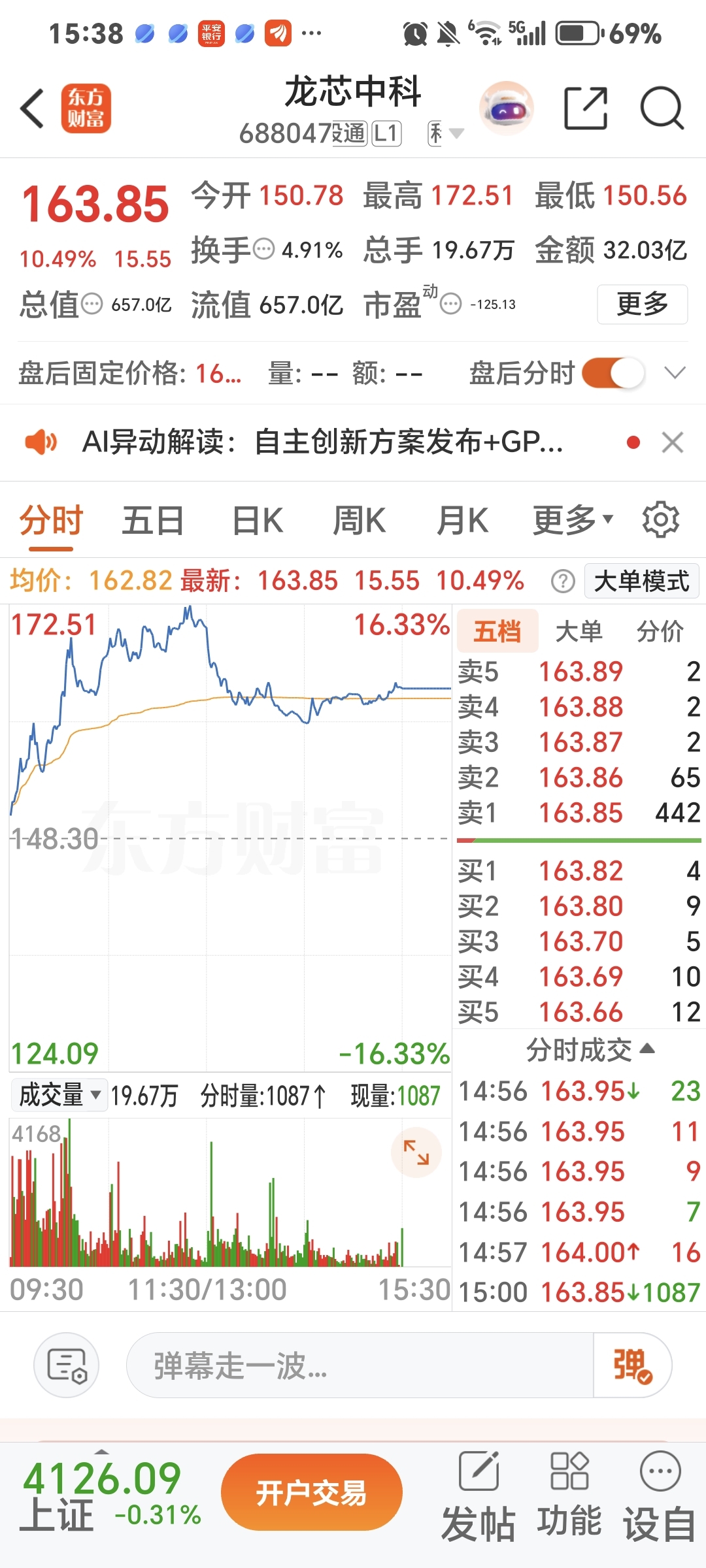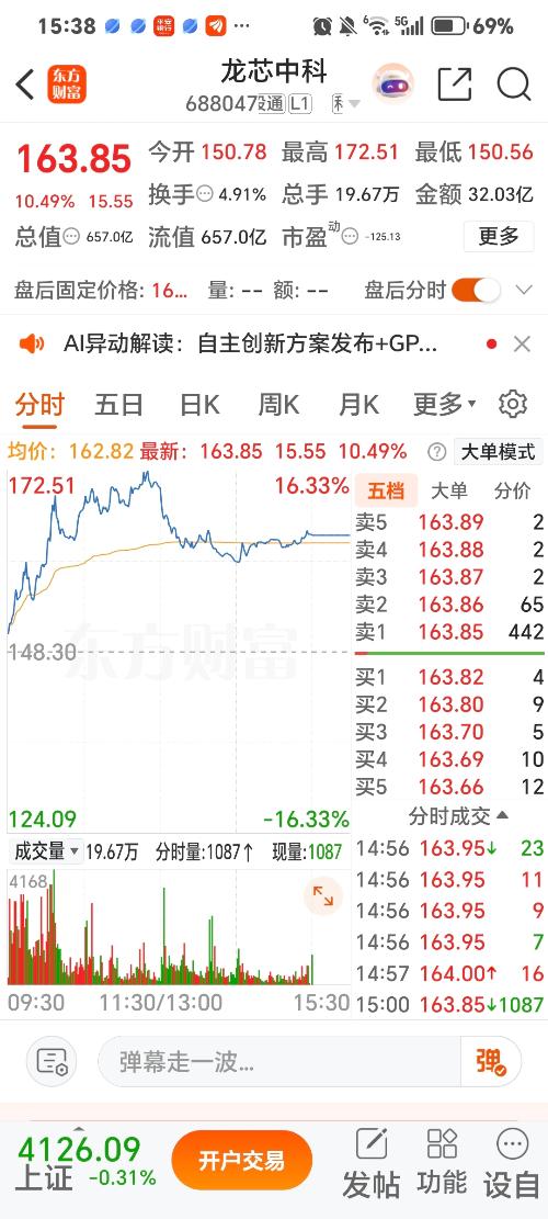 尽管监管层给市场降温,龙芯今天收盘还能涨10个点,非常的不容易了。小红花一朵