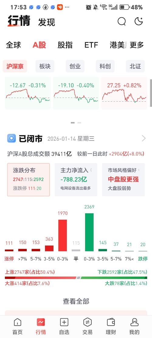 2026年1月14日,成交量继续放大,沪深两市成交3.94万亿,再创历史新高。按成交量的万分之五计算,今天一天的证券交易印花税就是19.7亿!这都是股民们无私奉献出来的。