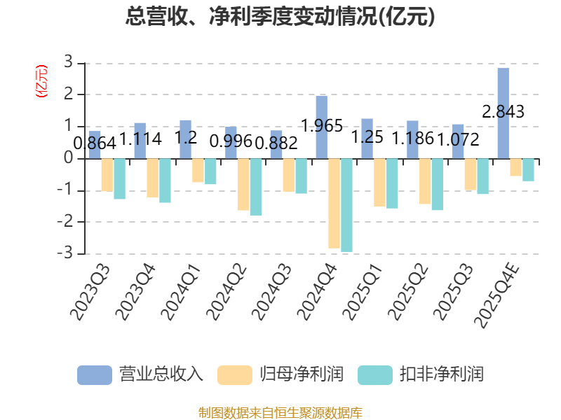 中证智能财讯龙芯中科(688047)1月23日晚间披露2025年度业绩预告,预计2025年实现营业收入6.35亿元,同比增长26%;归母净利润亏损4.49亿元,上年同期亏损6.25亿元;扣非净利润亏损5.03亿元,上年同期亏损6.65亿元。以1月23日收盘价计算,龙芯中科目前市盈率(TTM)约为-172.37倍,市净率(LF)约30.28倍,市销率(TTM)约121.88倍。