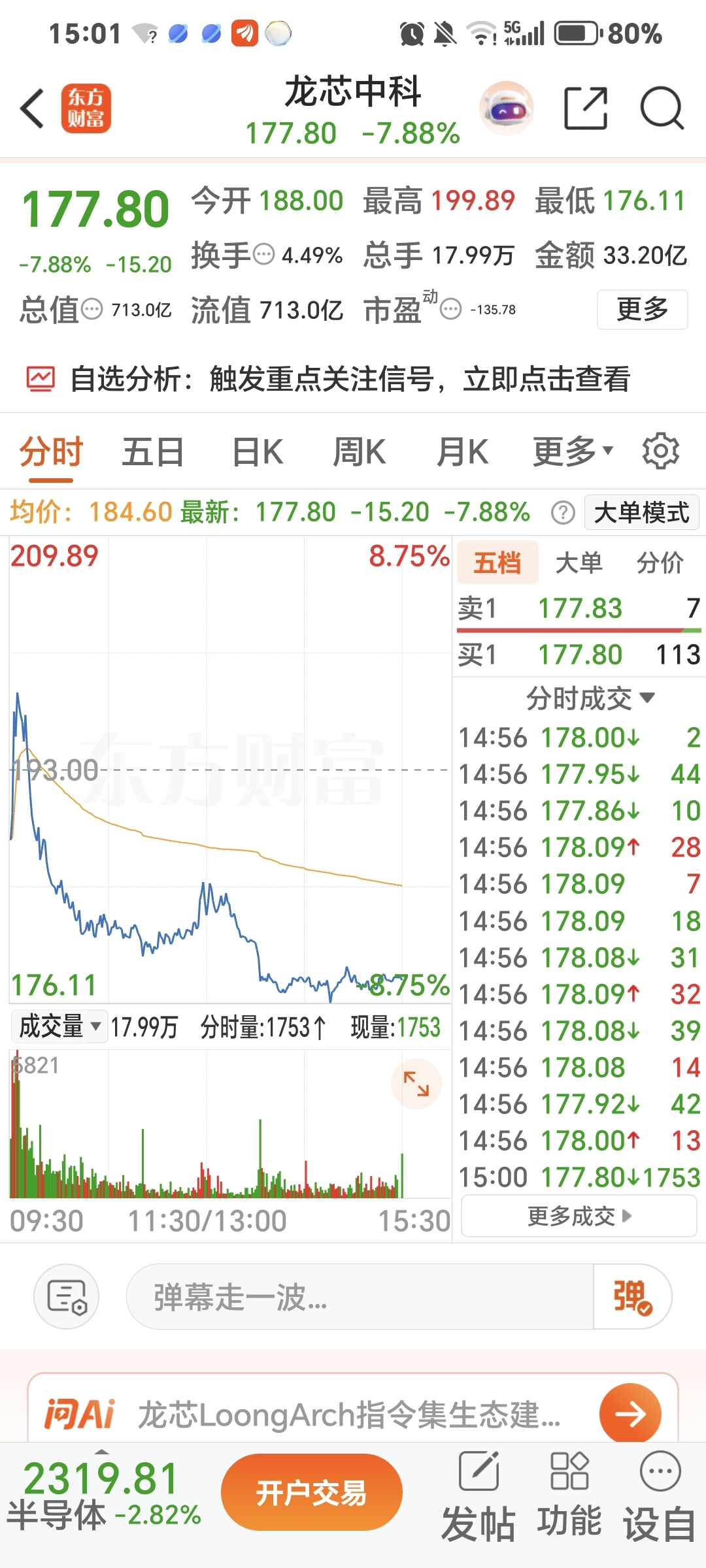 1月26日,科技股大调整,龙芯中科必须是龙头