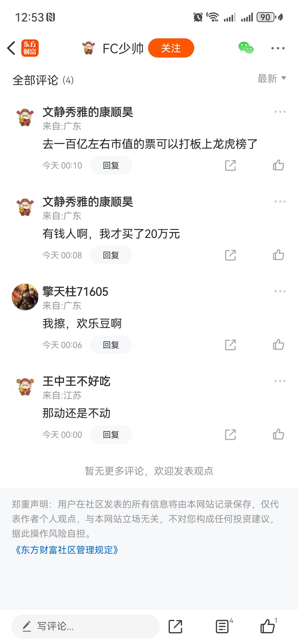 温馨提示: 1.根据《证券法》规定,禁止编造、传播虚假信息或者误导性信息,扰乱证券市场;2.用户在本社区发表的所有资料、言论等仅代表个人观点,与本网站立场无关,不对您构成任何投资建议。用户应基于自己的独立判断,自行决定证券投资并承担相应风险。《东方财富社区管理规定》