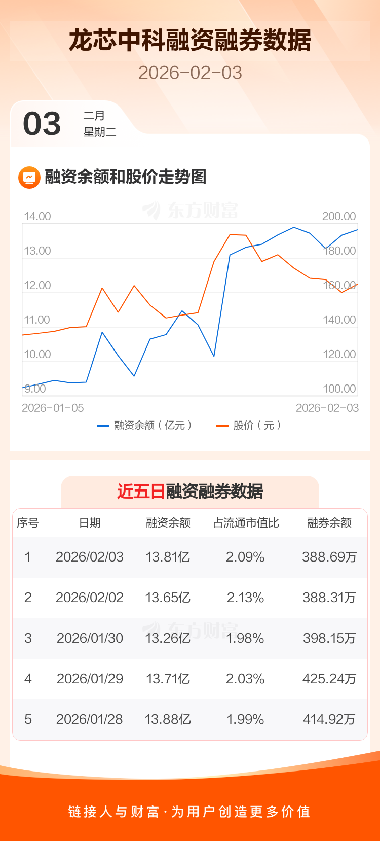 交易所最新数据显示,龙芯中科于2026年2月3日获融资买入1.52亿元,融资偿还1.36亿元,当日融资净买入1561.79万元。目前,该股融资余额13.81亿,占流通市值比例为2.09%。