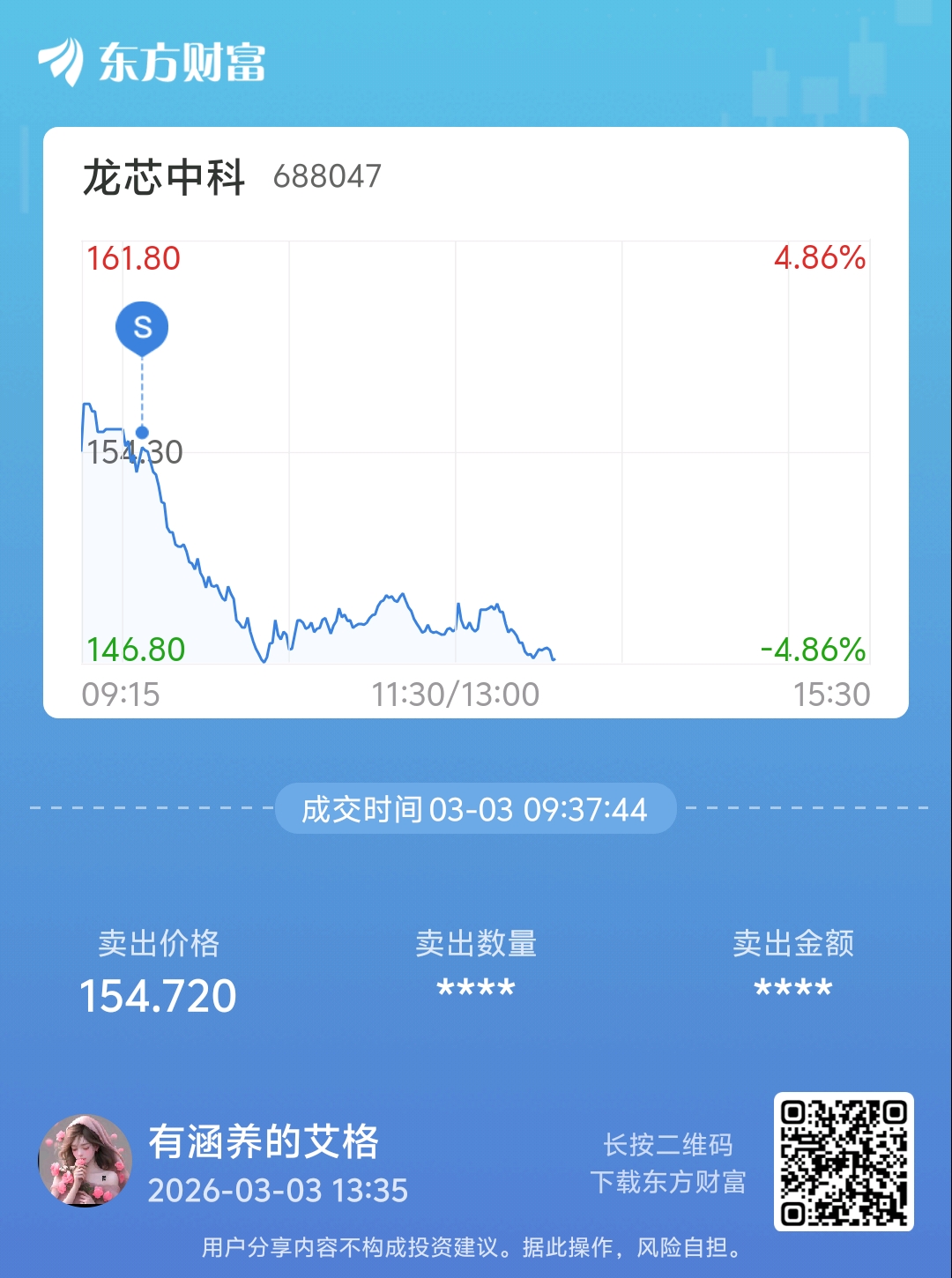 温馨提示: 1.根据《证券法》规定,禁止编造、传播虚假信息或者误导性信息,扰乱证券市场;2.用户在本社区发表的所有资料、言论等仅代表个人观点,与本网站立场无关,不对您构成任何投资建议。用户应基于自己的独立判断,自行决定证券投资并承担相应风险。《东方财富社区管理规定》