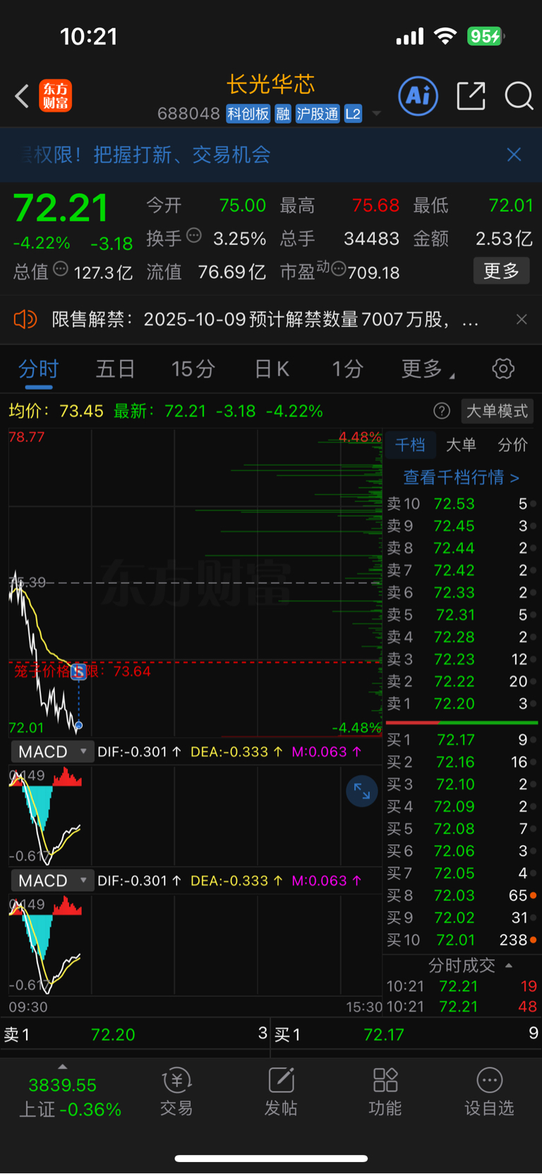 $长光华芯(SH688048)$ 拉基,现在走了你该反弹了吧