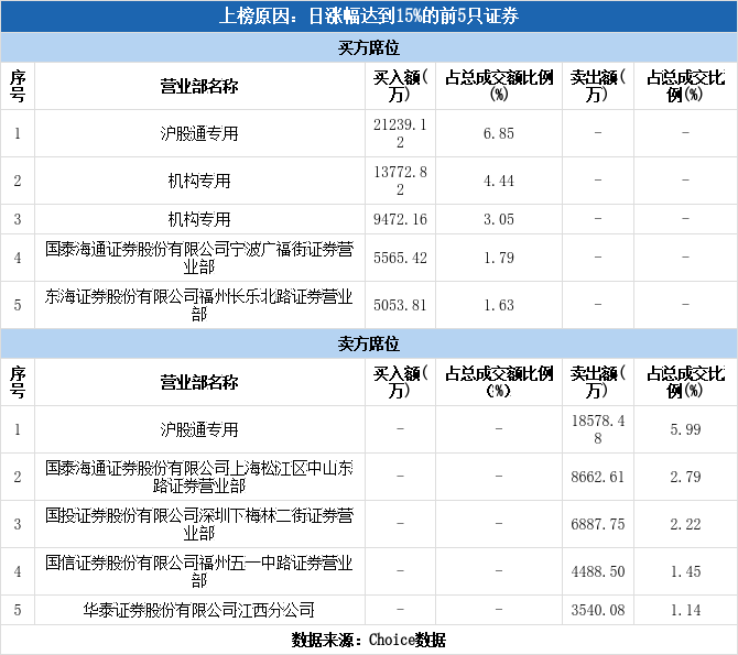 多主力现身龙虎榜,长光华芯涨停(11-26)