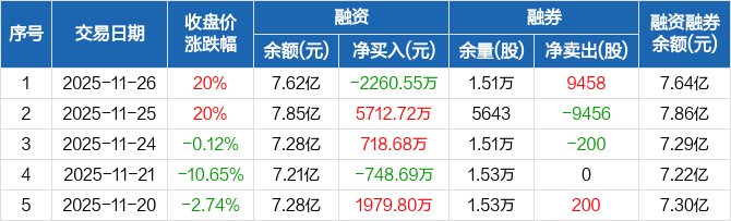 长光华芯:融资净偿还2260.55万元,融资余额7.62亿元(11-26)