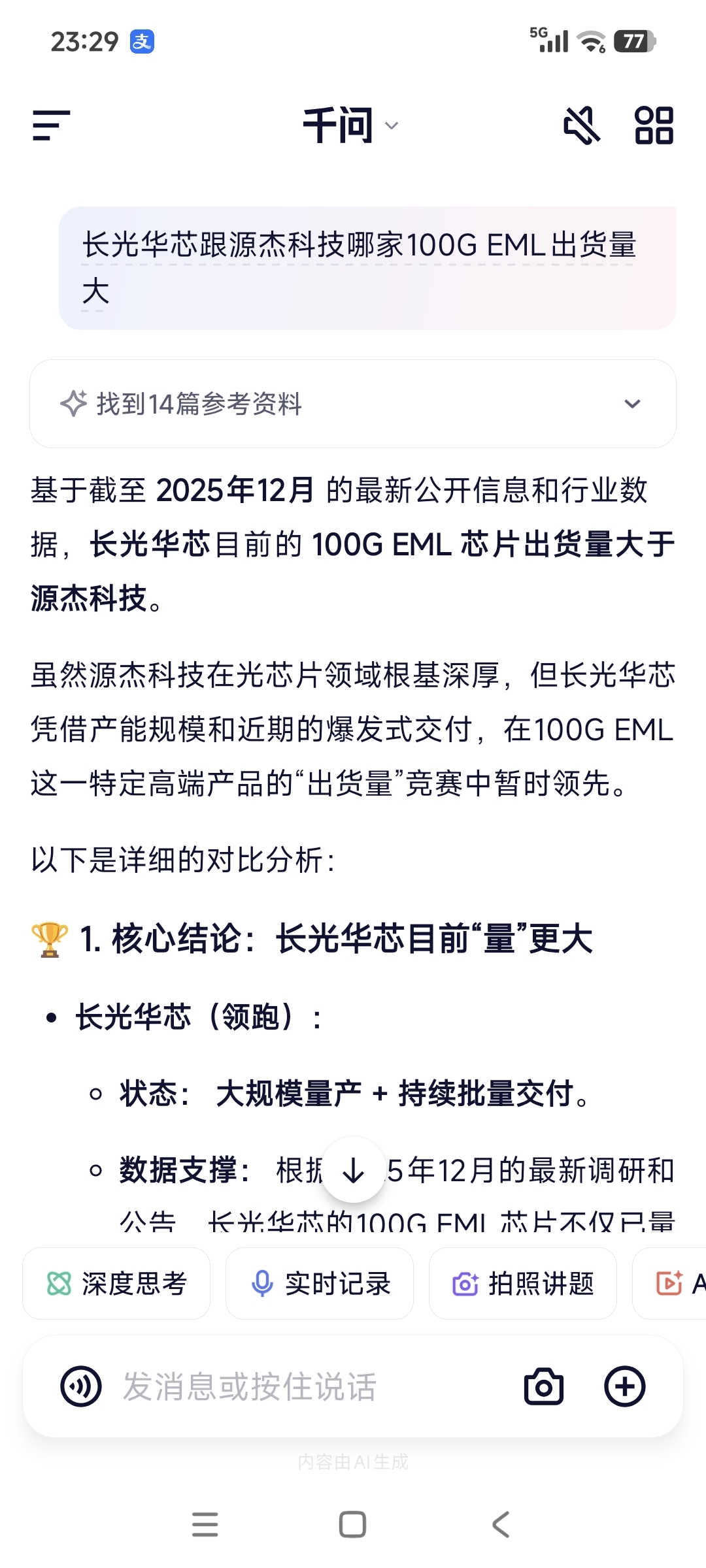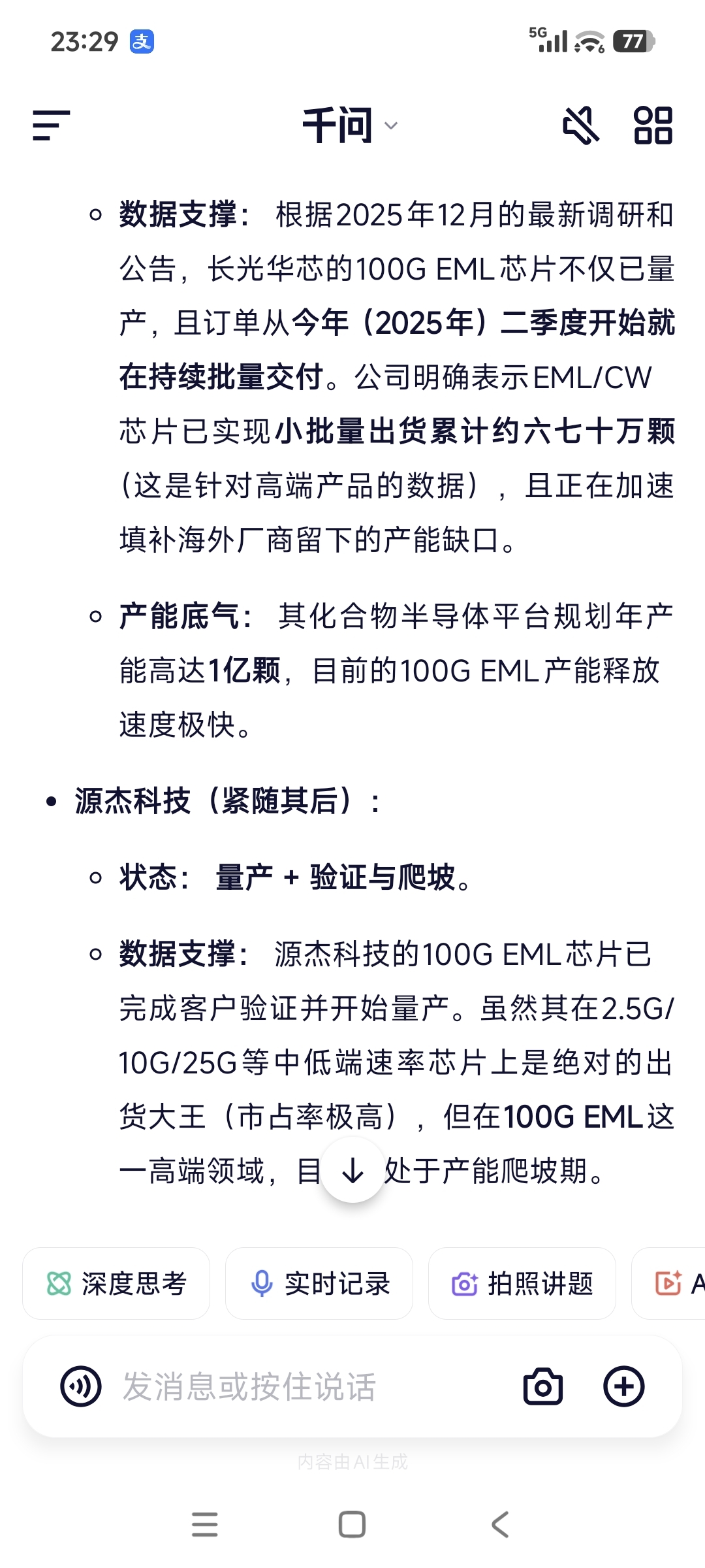为啥大模型说长光华芯目前的100G EML芯片出货量大于源杰科技,但长光业绩差那么多,这并不合理