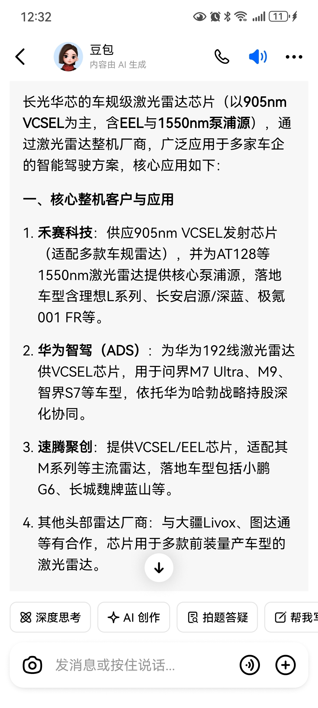我查了禾赛,华为他们用了激光雷达发射芯片都是长光华芯的。
