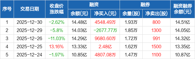 长光华芯:融资余额14.48亿元,创历史新高(12-30)