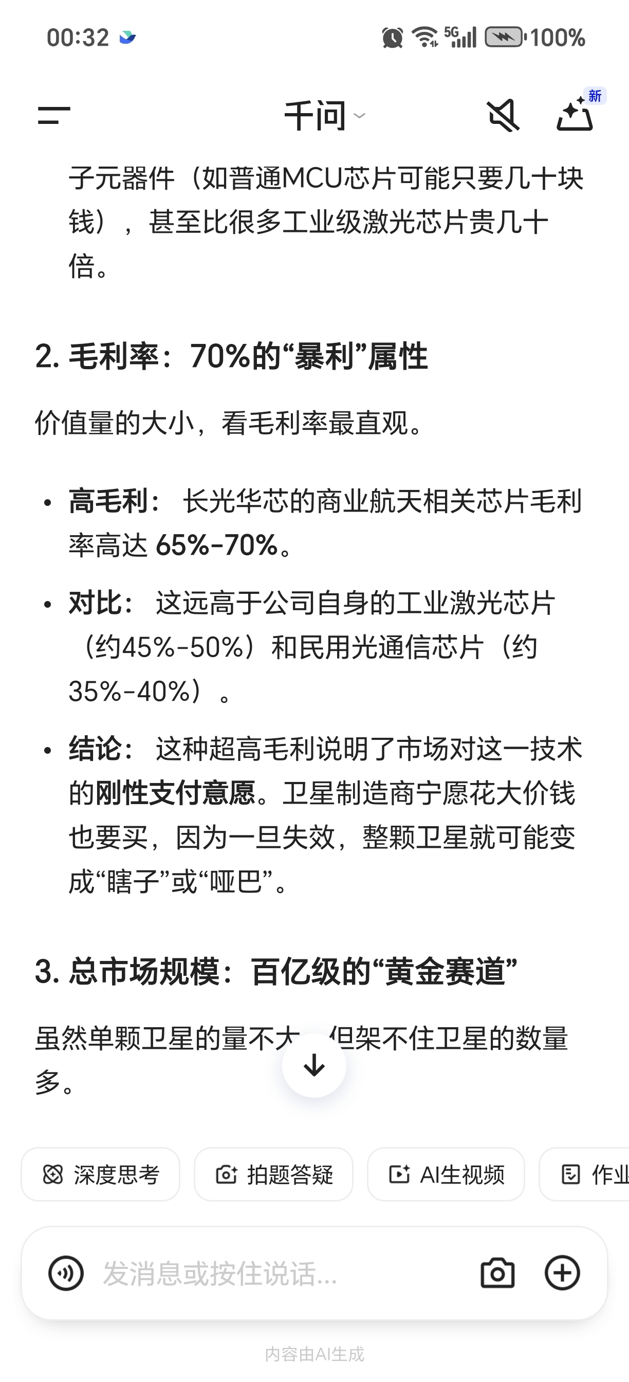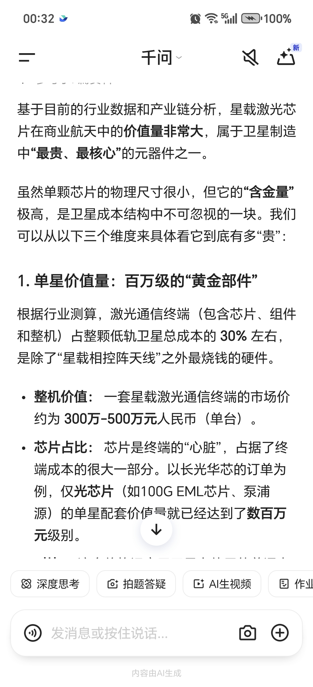 不要单单把他当成光通信芯片,纯正的商业航天股星载激光芯片价值量最高护城河最高的隐