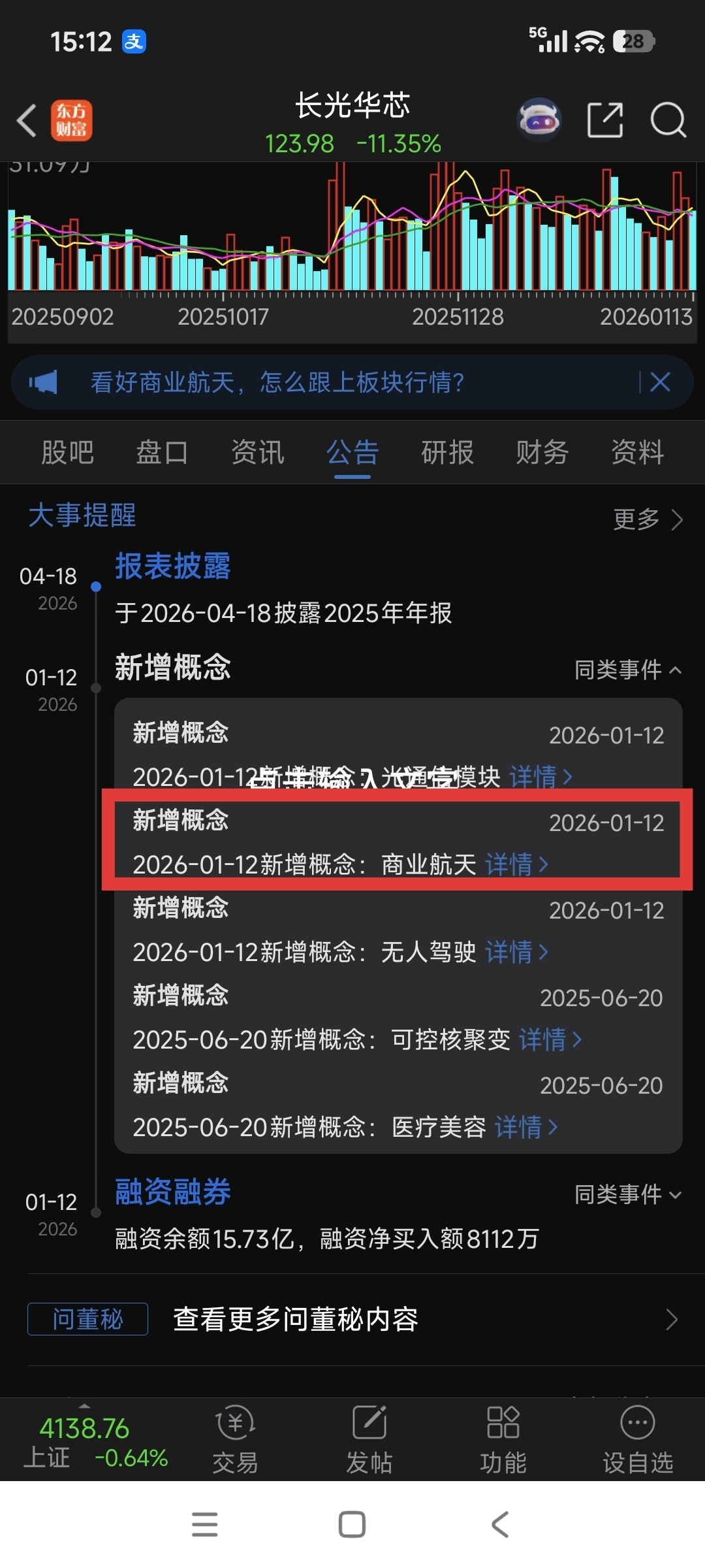 这是最冤的,昨天刚新增商业航天概念,当天商业航天板块暴涨7.08%,长光微涨0.