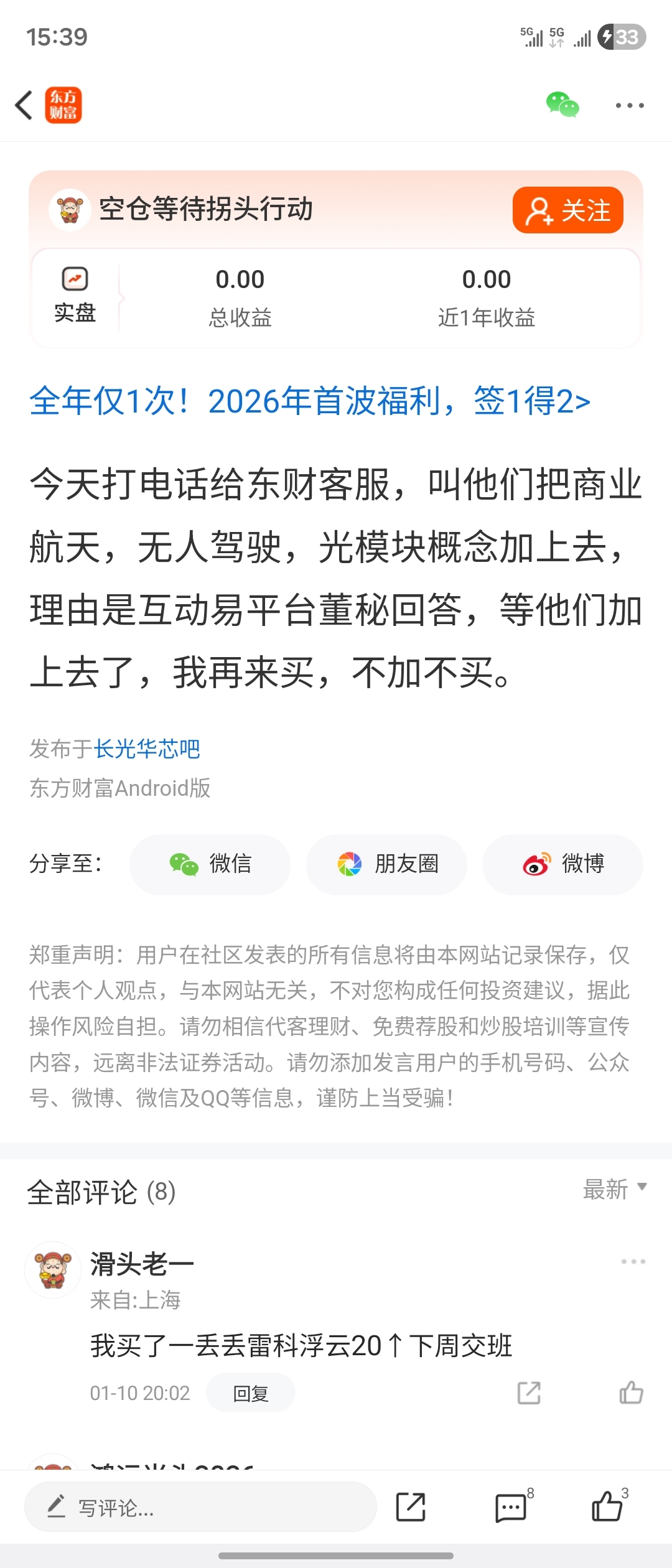 温馨提示: 1.根据《证券法》规定,禁止编造、传播虚假信息或者误导性信息,扰乱证券市场;2.用户在本社区发表的所有资料、言论等仅代表个人观点,与本网站立场无关,不对您构成任何投资建议。用户应基于自己的独立判断,自行决定证券投资并承担相应风险。《东方财富社区管理规定》