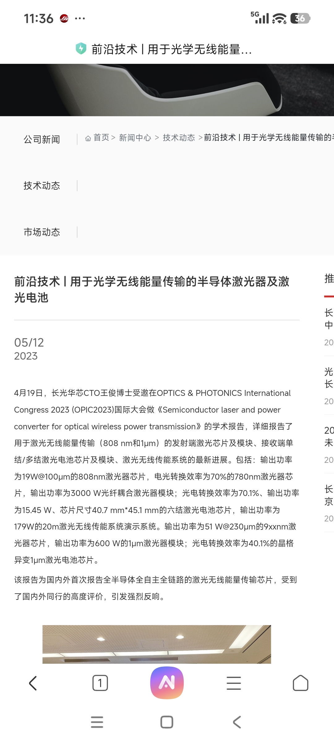 2023年4月19日长光华芯首次报告全半导体全自主全链路的激光无线能量传输芯片激
