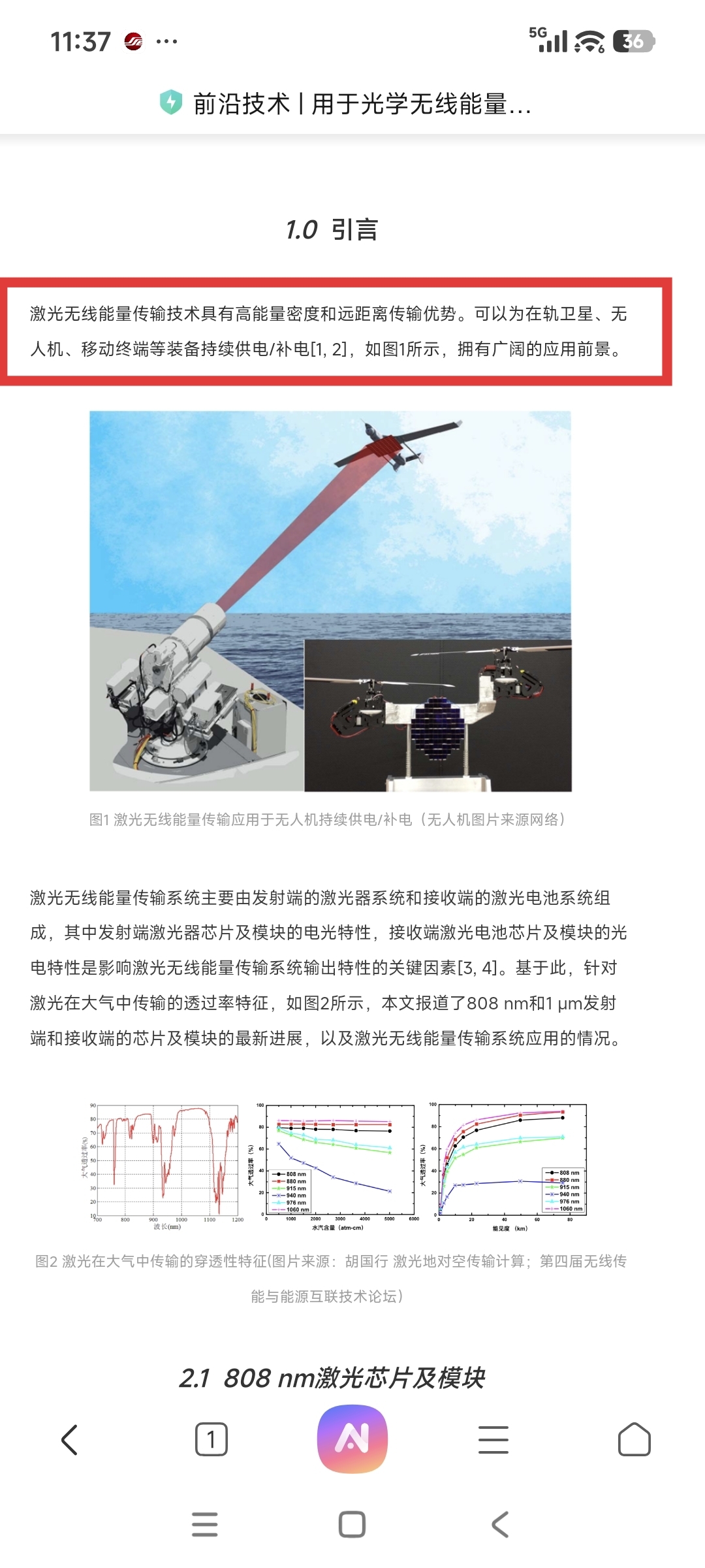 激光无线能量传输技术具有高能量密度和远距离传输优势。可以为在轨卫星、无人机、移动终端等装备持续供电/补电,拥有广阔的应用前景。(全文挺长有兴趣的去长光官网找)