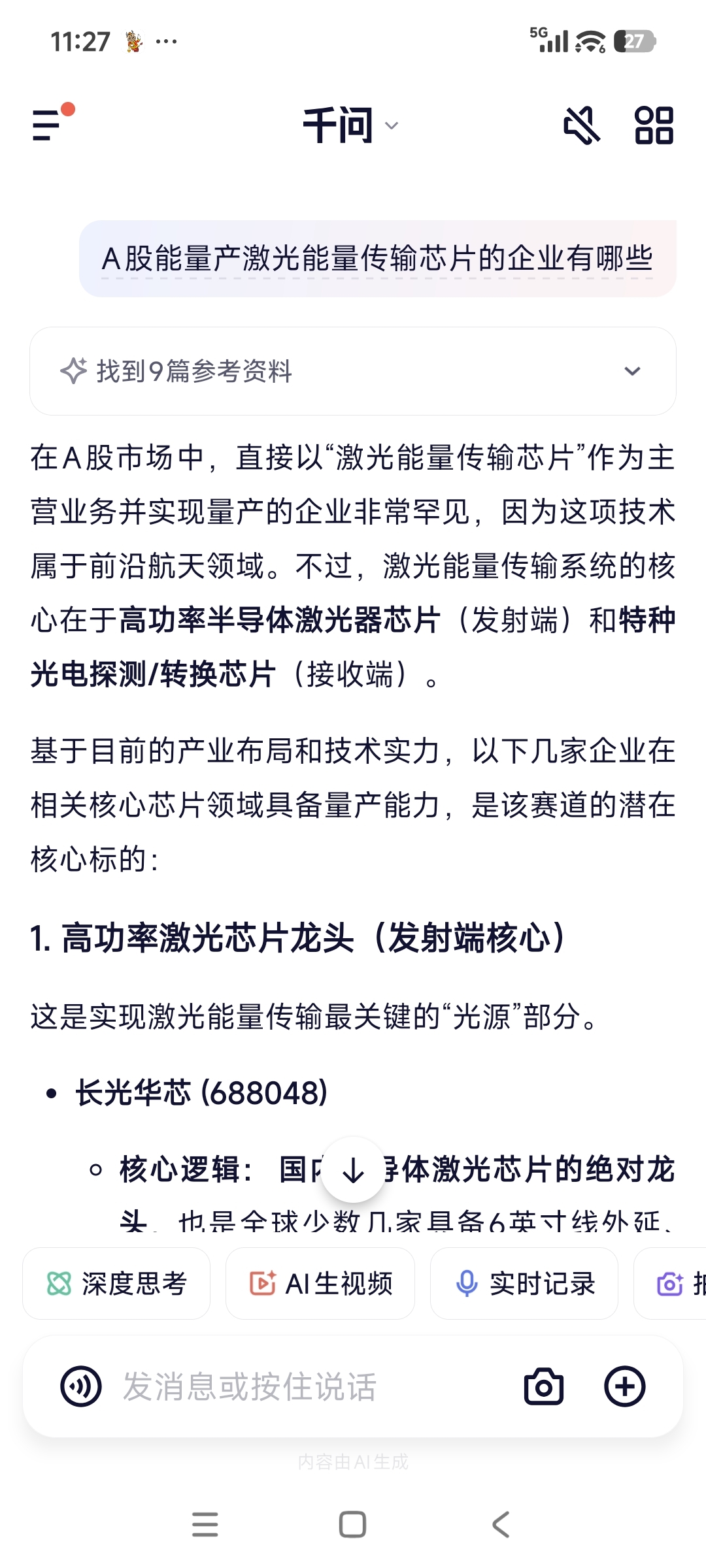 在A股市场中,直接以“激光能量传输芯片”作为主营业务并实现量产的企业非常罕见,因