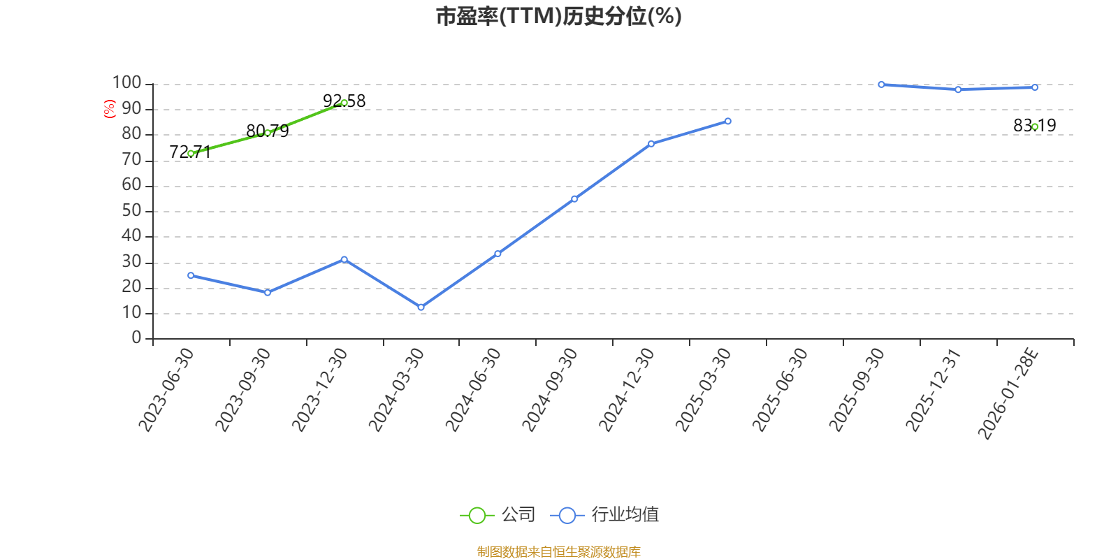 市盈率、市净率为负时,不显示当期分位数,会导致折线图中断。