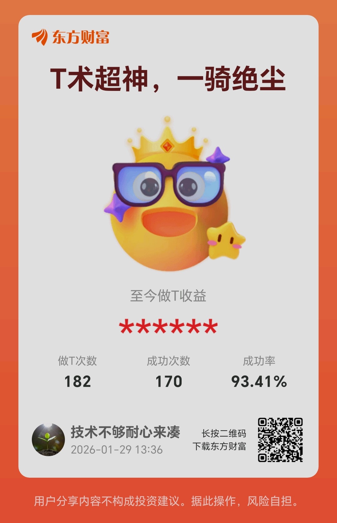 大波动好做T,每天定个小目标,持仓成本每天降低1块,坚8持半年下来,收益率也会很