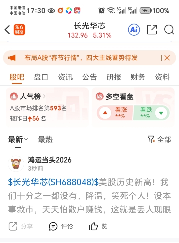 温馨提示: 1.根据《证券法》规定,禁止编造、传播虚假信息或者误导性信息,扰乱证券市场;2.用户在本社区发表的所有资料、言论等仅代表个人观点,与本网站立场无关,不对您构成任何投资建议。用户应基于自己的独立判断,自行决定证券投资并承担相应风险。《东方财富社区管理规定》