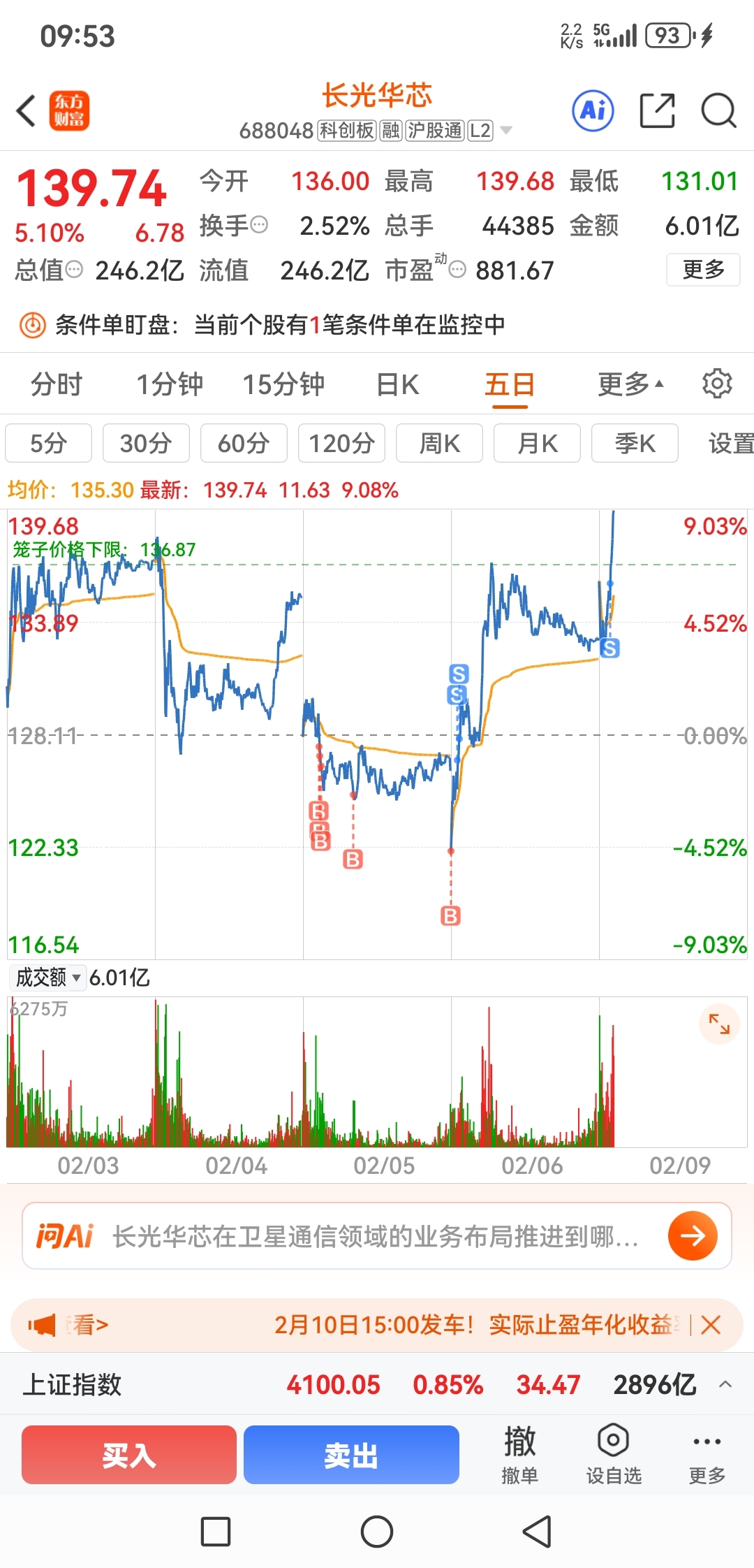 $长光华芯(SH688048)$  卖飞了,早上开盘进做对了。昨天我3000多股,今天127出的,最高涨到137,挺可惜3万。