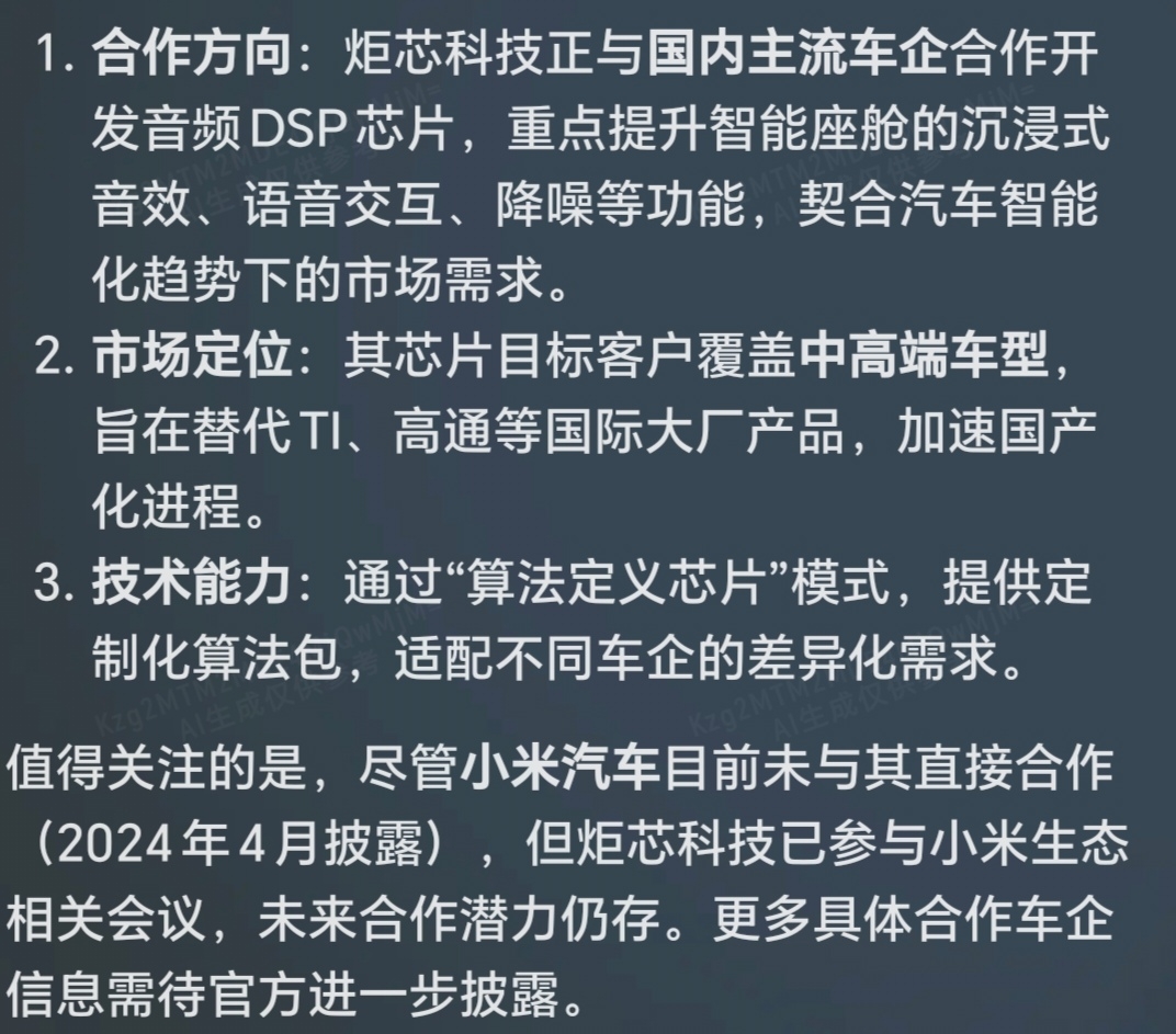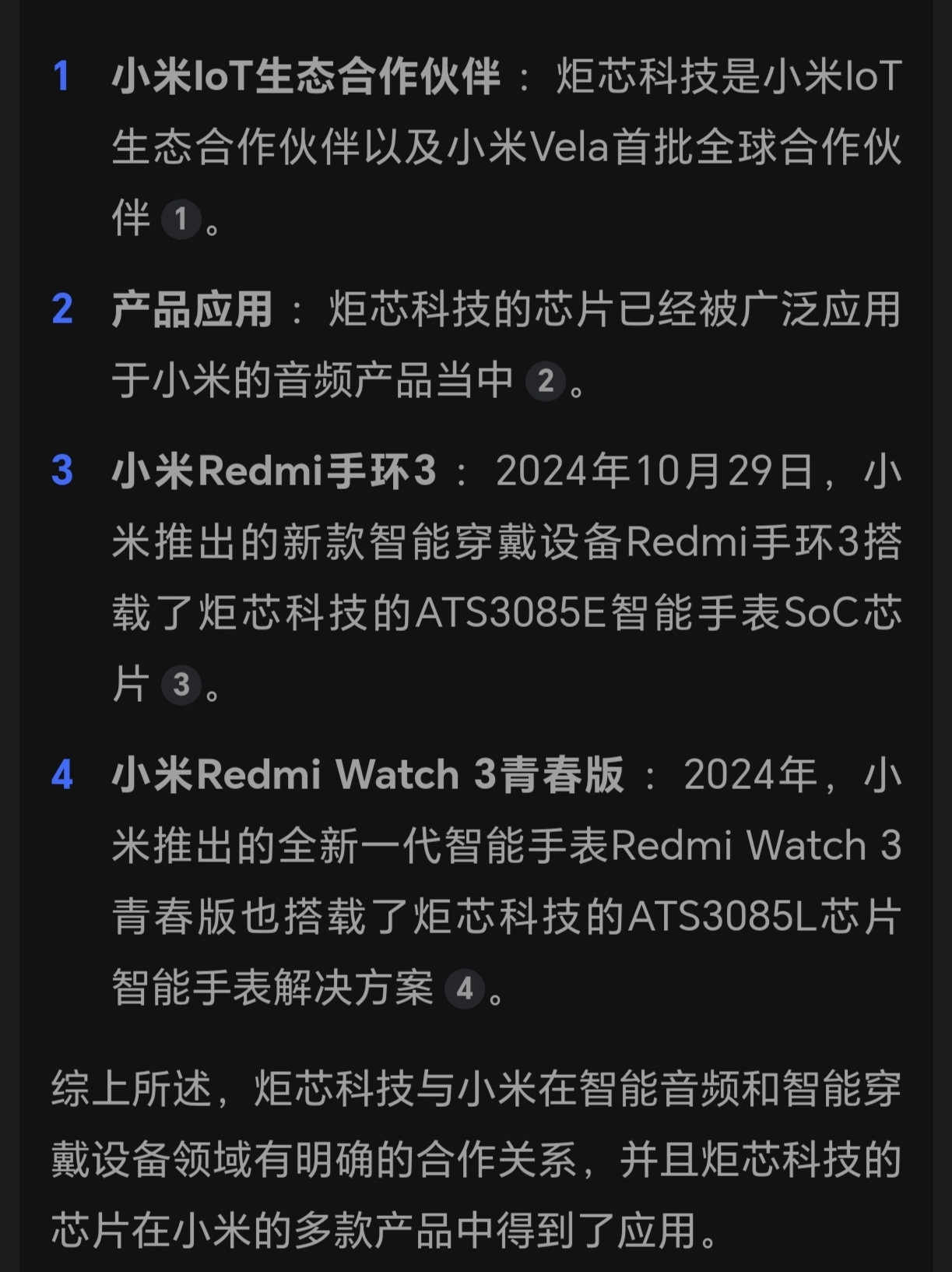小米生态合作伙伴,参与汽车,手表,音响等领域