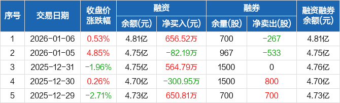 炬芯科技:融资净买入656.52万元,融资余额4.81亿元(01-06)
