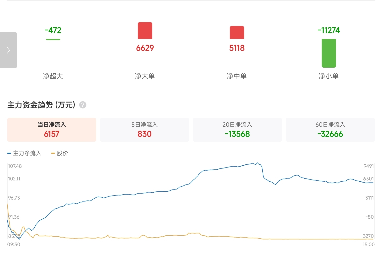 早上开盘8分钟成交将近4个亿,主力资金流出3,200万,下跌超18个点。随后主力
