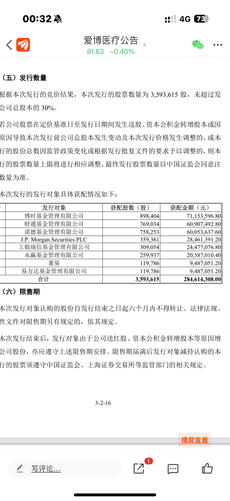 $爱博医疗(SH688050)$ 根据公告,配售机构如下: