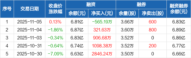 爱博医疗:融资净偿还565.19万元,融资余额6.81亿元(11-05)