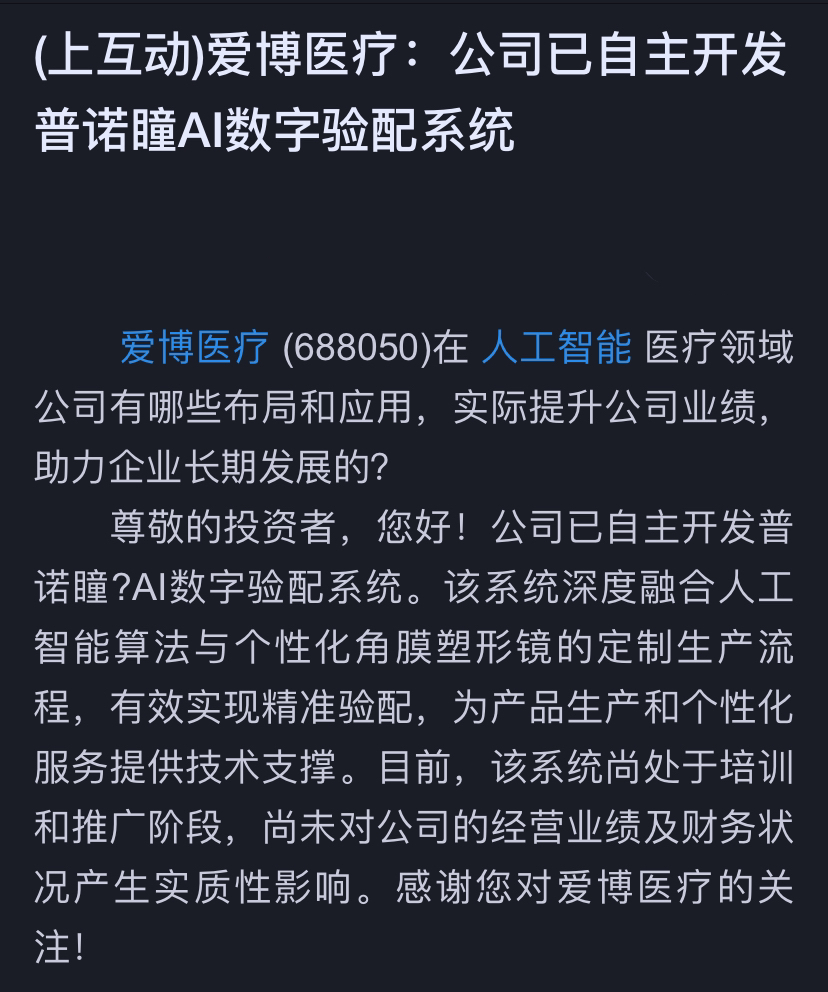 $爱博医疗(SH688050)$ 人工智能是真的吗