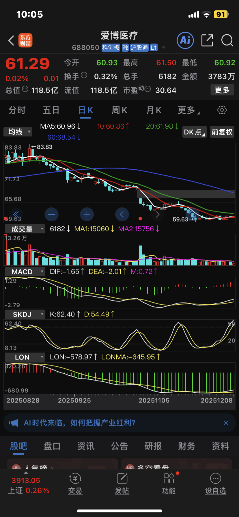 $爱博医疗(SH688050)$ 这个股票反转,至少还得一年后