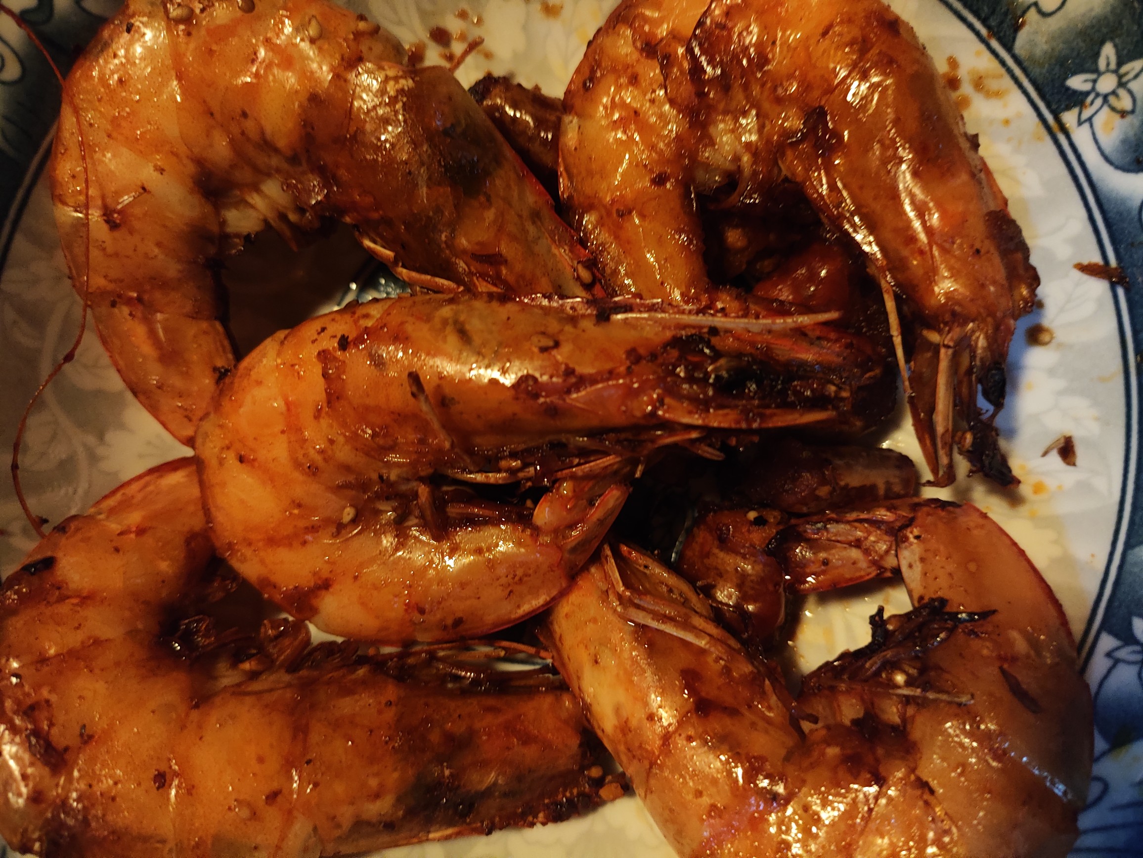 庆祝爱博周五收涨,烤五个大虾。呵呵