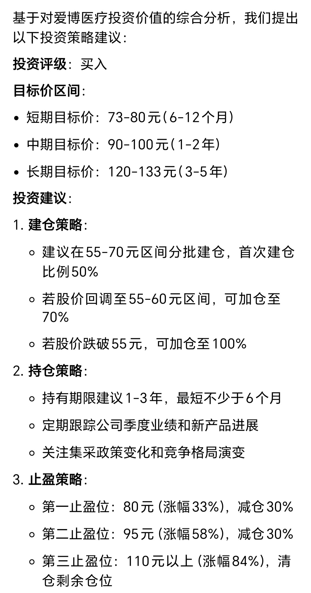 $爱博医疗(SH688050)$ 高盛在2025年11月3日的研报中,虽因爱博医疗三季度业绩不及预期下调目标价,但仍维持“买入”评级,给出12个月目标价101元。