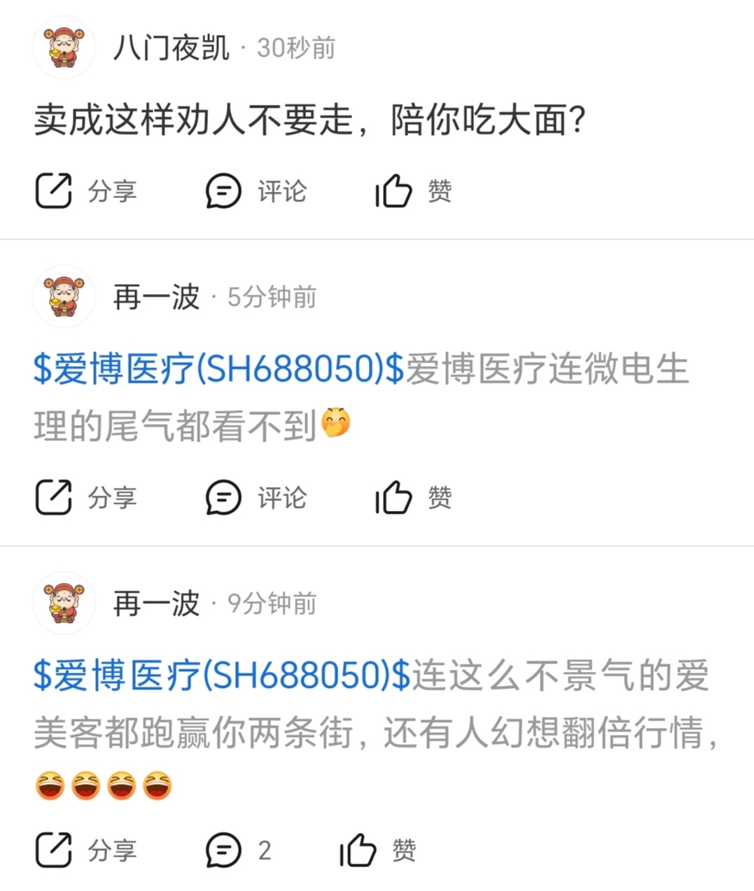 $爱博医疗(SH688050)$ 在此点名“八门夜凯”和“再一波”,你们底部唱空的行为,只能证明自己的智商不足。