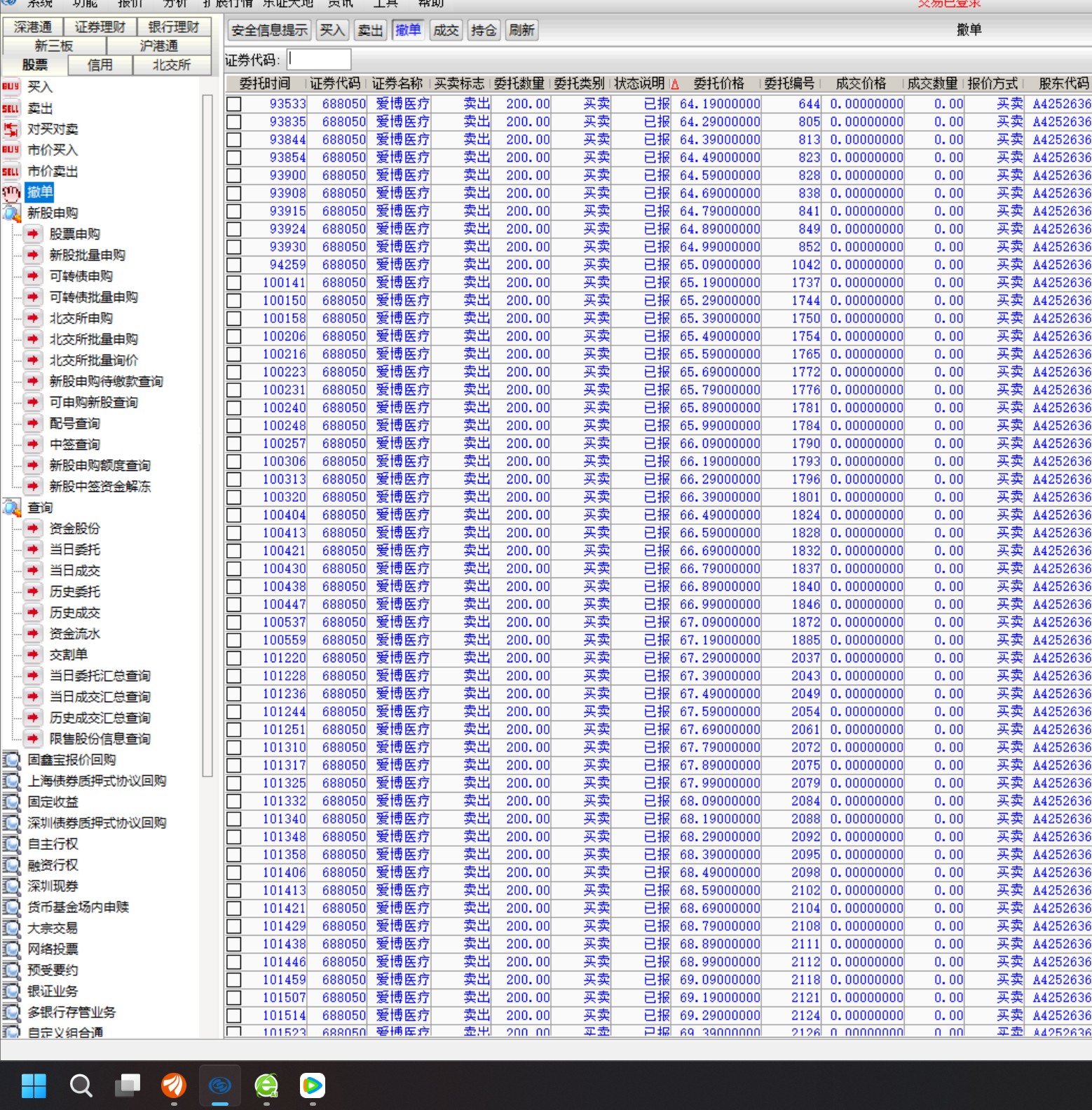 卖出9笔,还有更多挂单中,呵呵