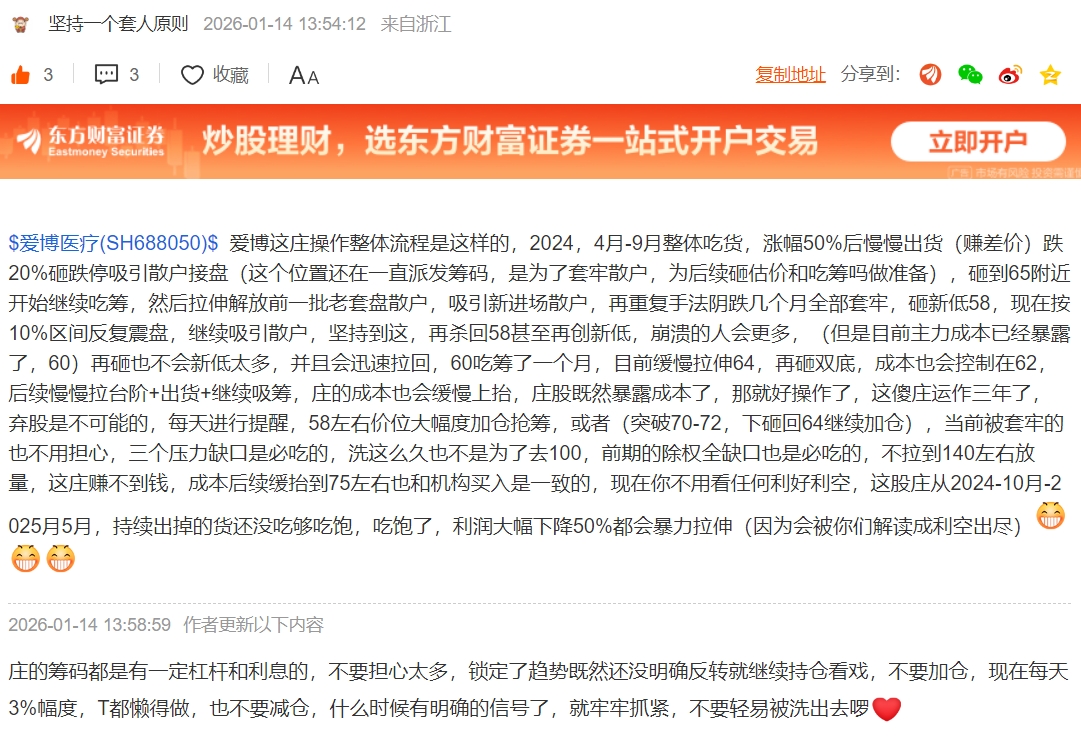 温馨提示: 1.根据《证券法》规定,禁止编造、传播虚假信息或者误导性信息,扰乱证券市场;2.用户在本社区发表的所有资料、言论等仅代表个人观点,与本网站立场无关,不对您构成任何投资建议。用户应基于自己的独立判断,自行决定证券投资并承担相应风险。《东方财富社区管理规定》