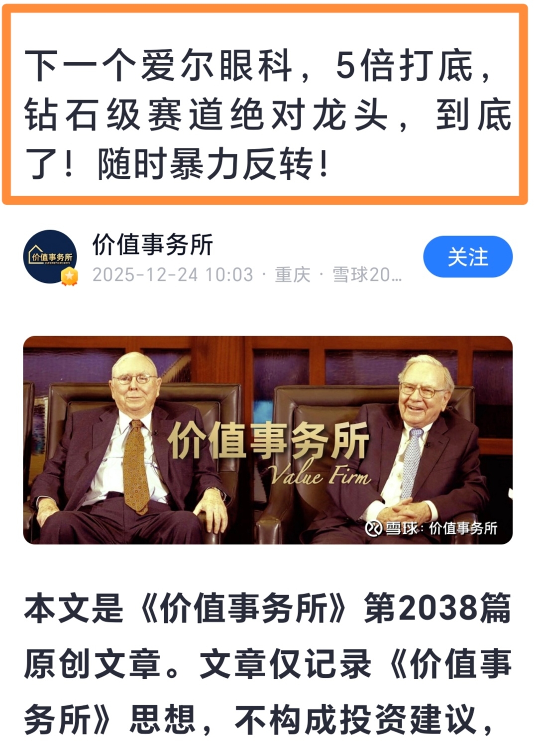 爱尔眼科涨了几十倍,爱博涨五倍不过分吧?