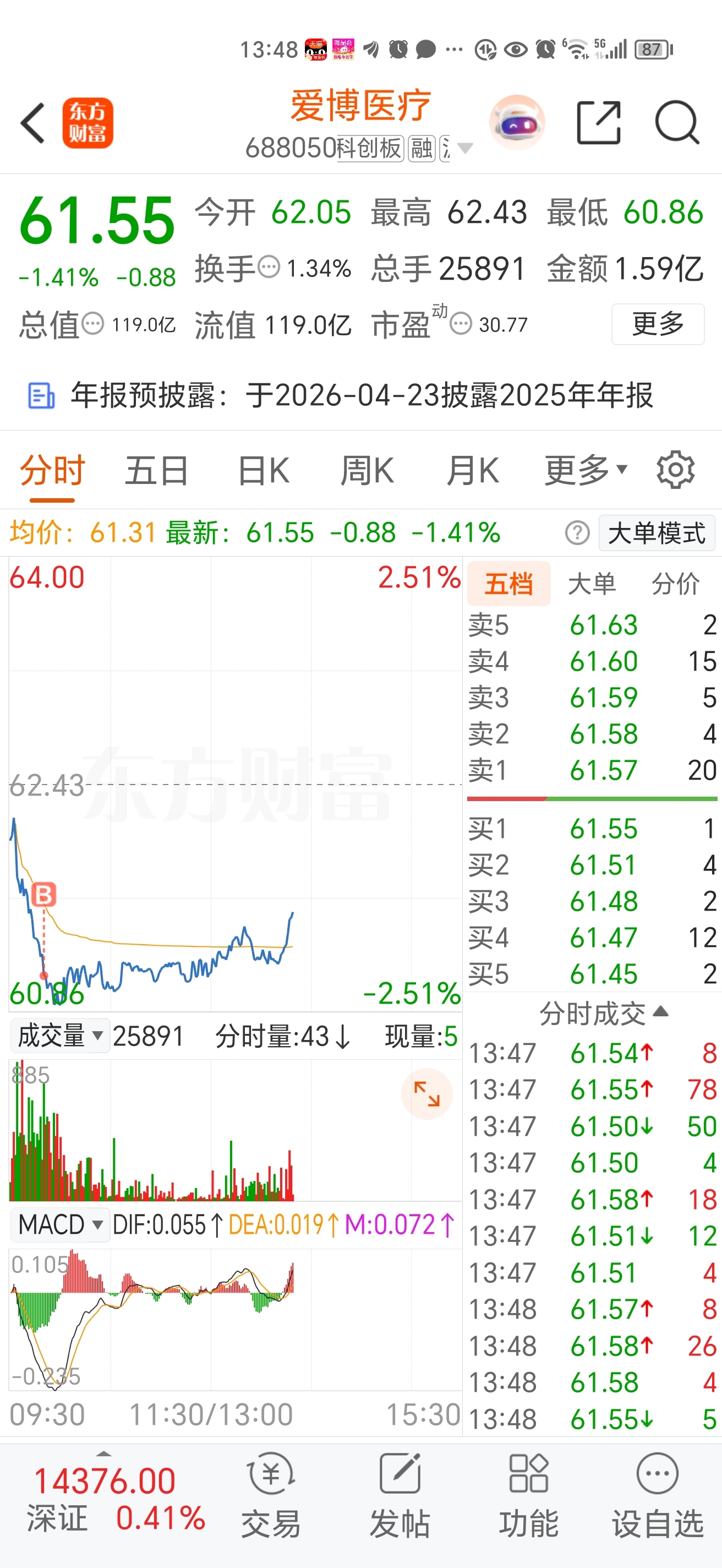 $爱博医疗(SH688050)$ 跌了就买。明天跌继续。杠上了
